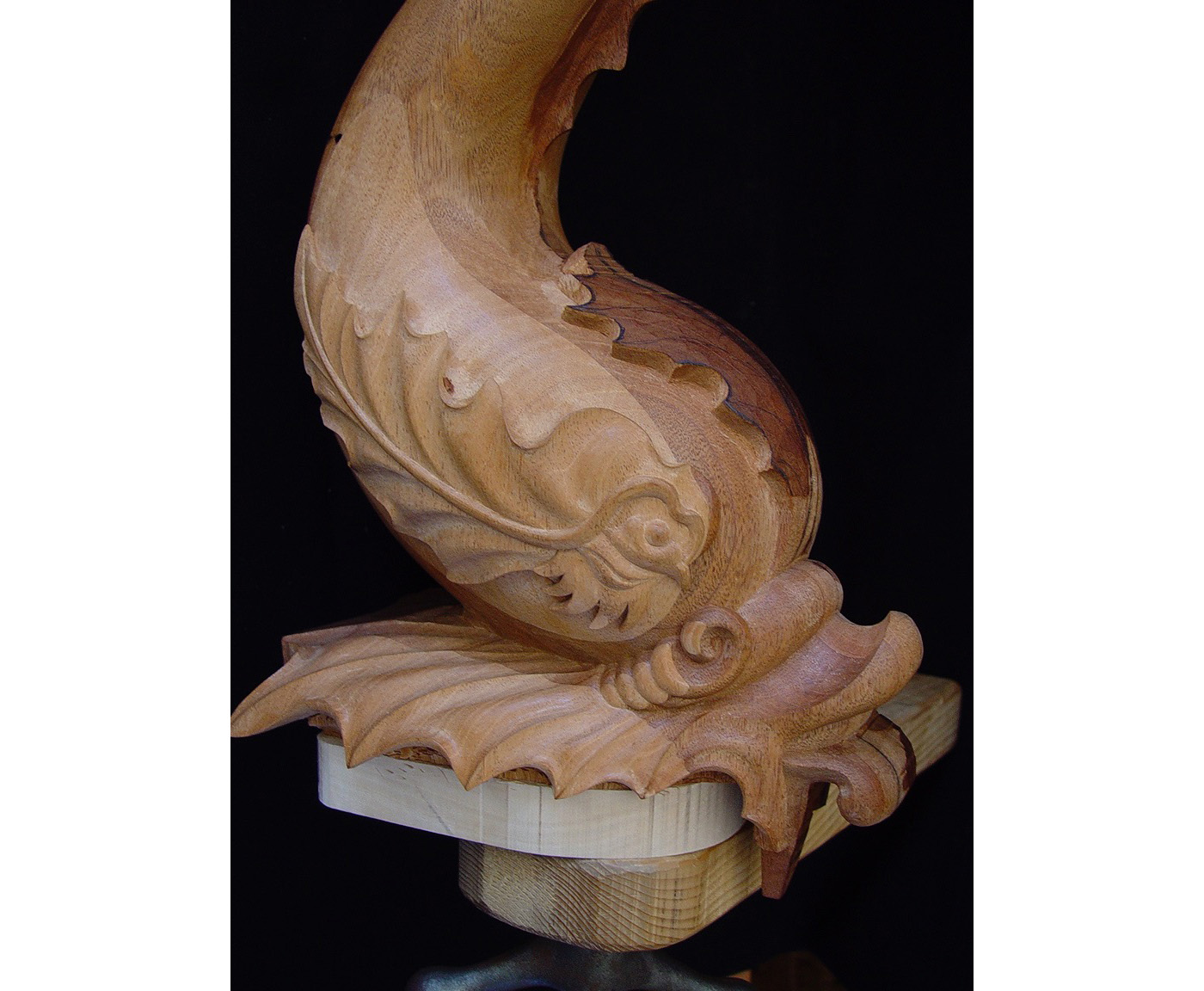 This piece is reproduction of a number of marble finials that surmounted an ancient (334BC) Athenian monument, the Choragic Monument of Lysicrates. The originals have long been long lost to theft, time, and/or vandalism. It stands about 26” and was produced as a center post for a table that Dimitrios intends to build. Until the table is built, however, the work can be seen as a showpiece in his studio.