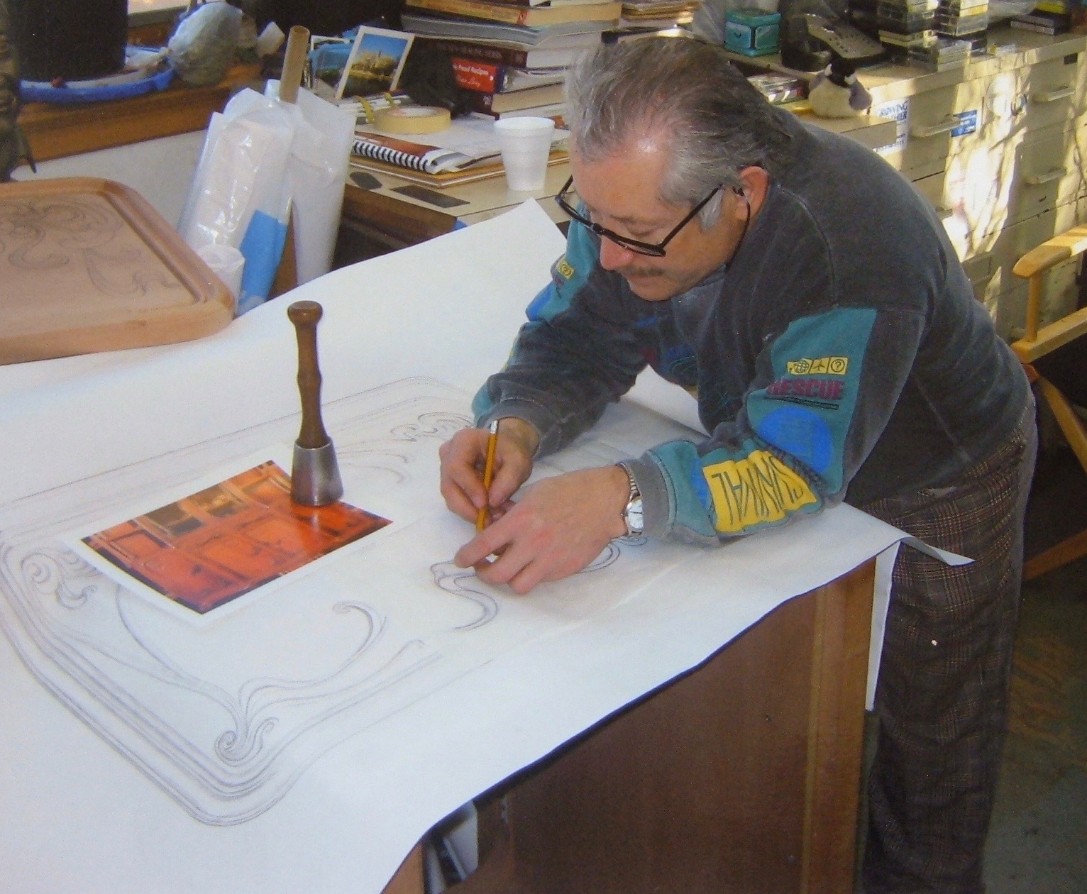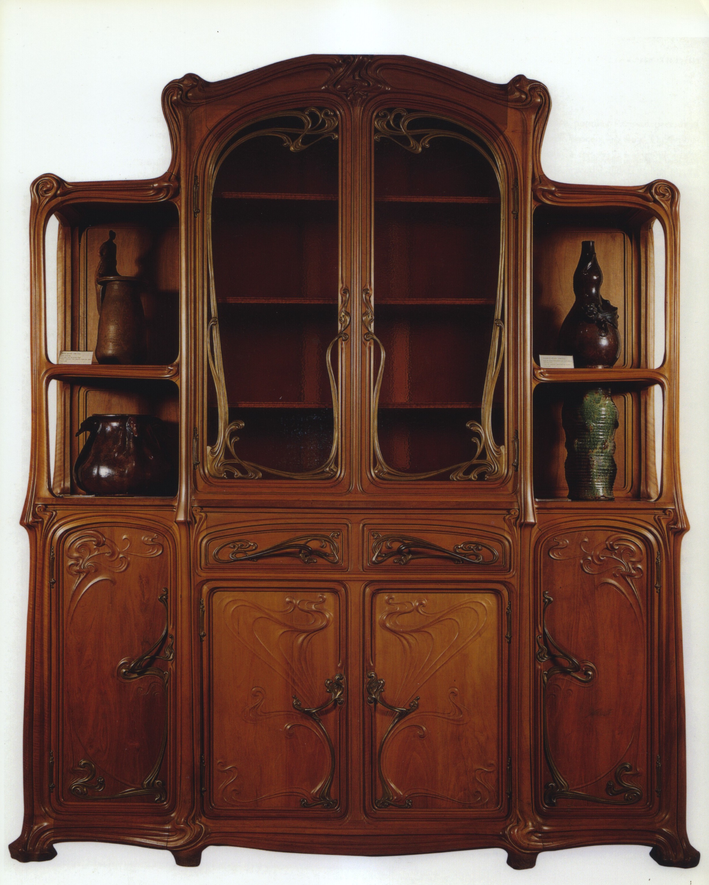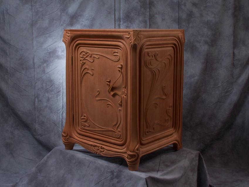 This vanity is the companion to the Art Nouveau Mirror. The vanity was created in a style to match the mirror, itself based upon and referencing a 1902 example seen in a New York gallery. More details on both can be seen at the link. Carved from pearwood.